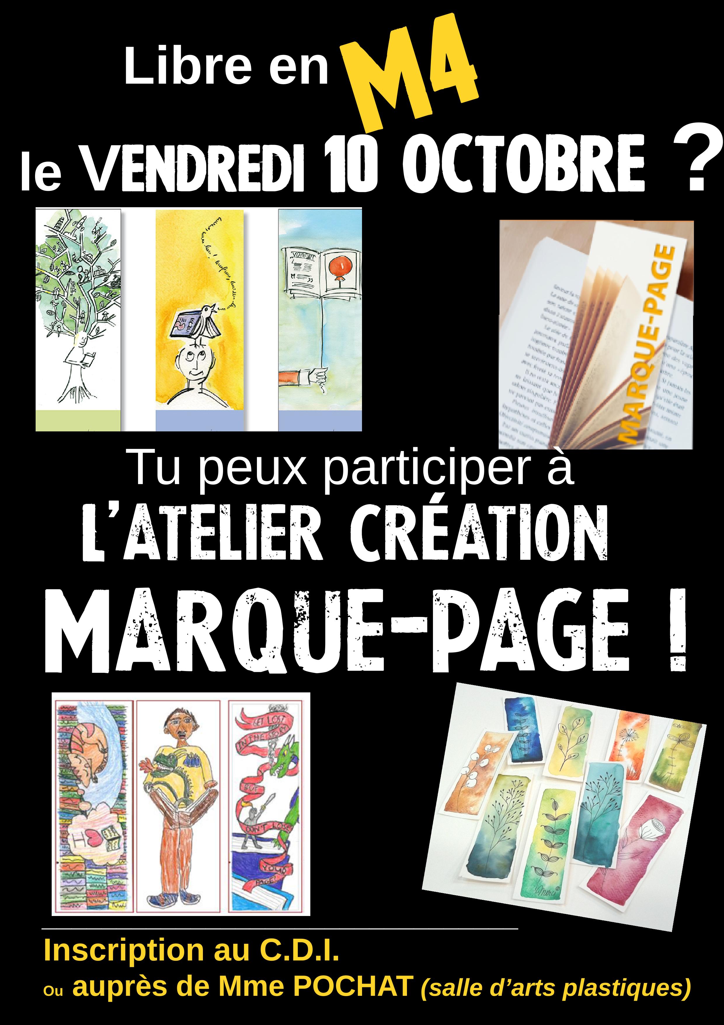 Pour accompagner ta Pause Lecture, on te propose de réaliser ton propre marque-page, avec les conseils techniques de la professeure d'arts plastiques ! Inscriptions et RDV au CDI.