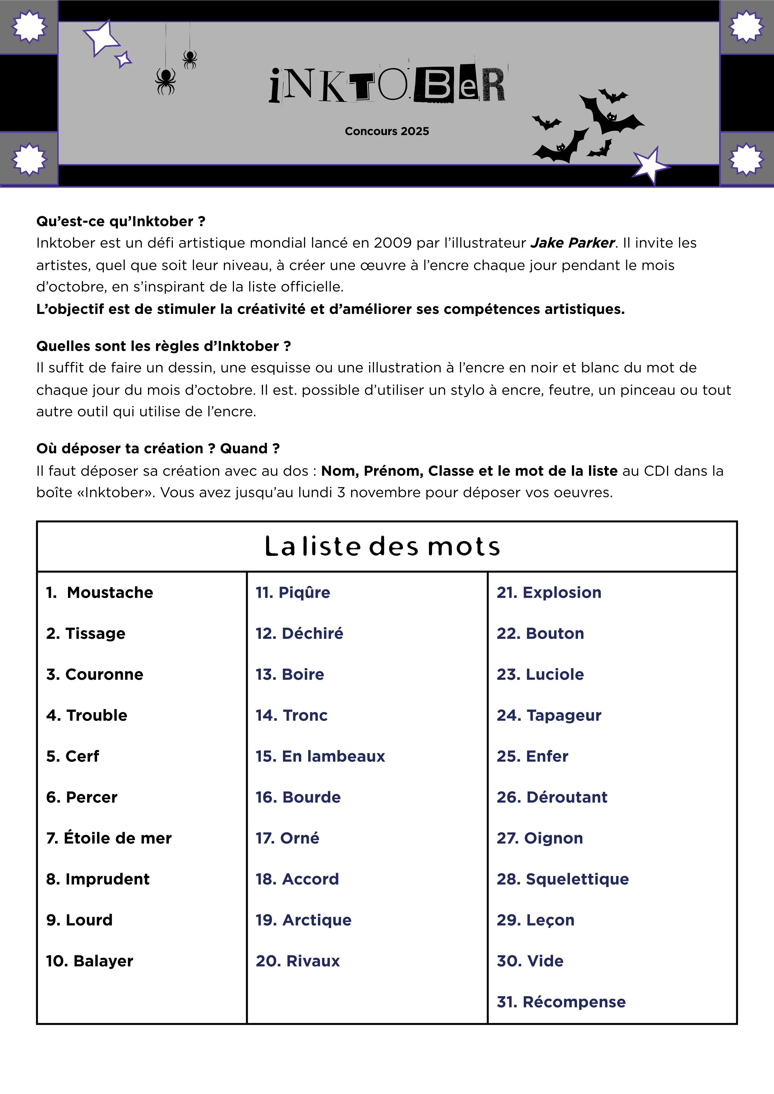 📢 Concours INKTOBER : 🖋️🖌️✒️ En octobre, réveille l'artiste qui est en toi !