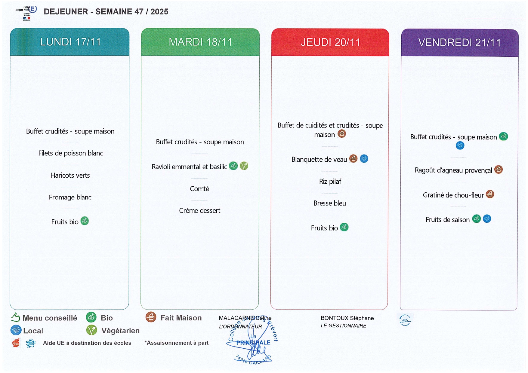 Du 17 au 21 novembre, le Chef vous propose ...