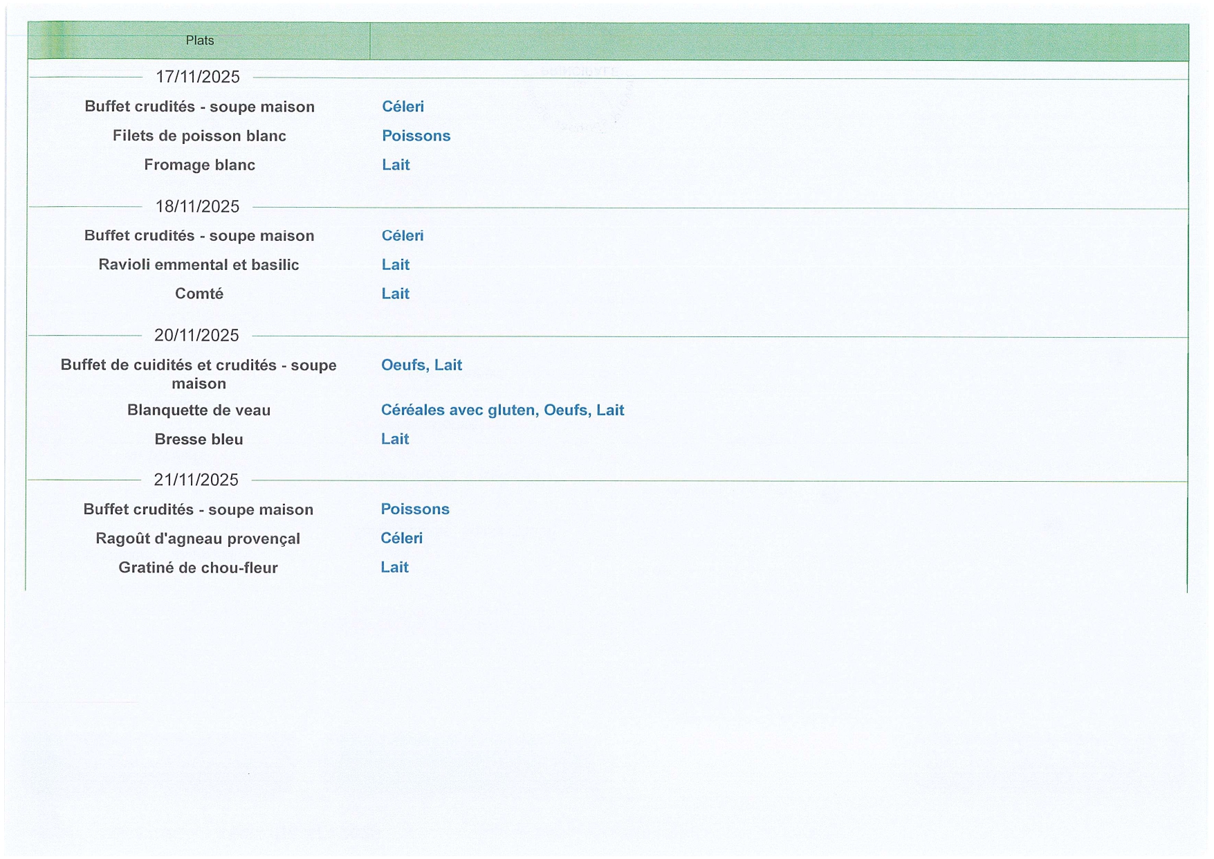 Menus sous réserve de modifications selon l'arrivage...