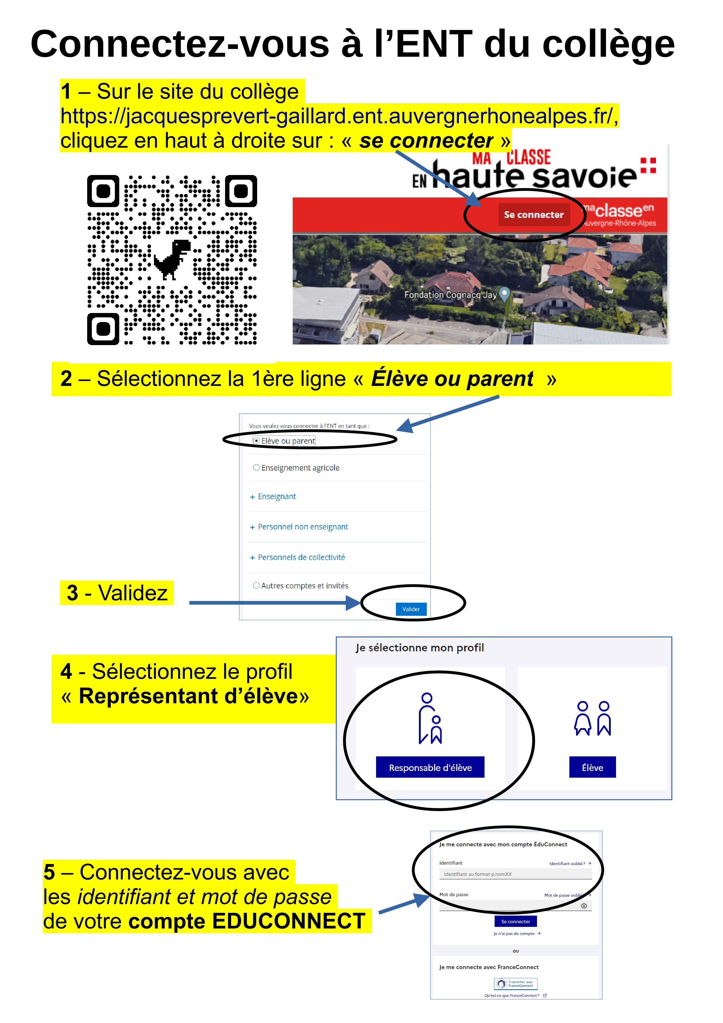 Une fois connecté(e), vous accédez depuis le MENU du site, à la Messagerie, au Cahier de texte, au carnet de liaison numérique et à Pronote (emploi du temps, notes, suivi Vie scolaire = absences, retards, observations)