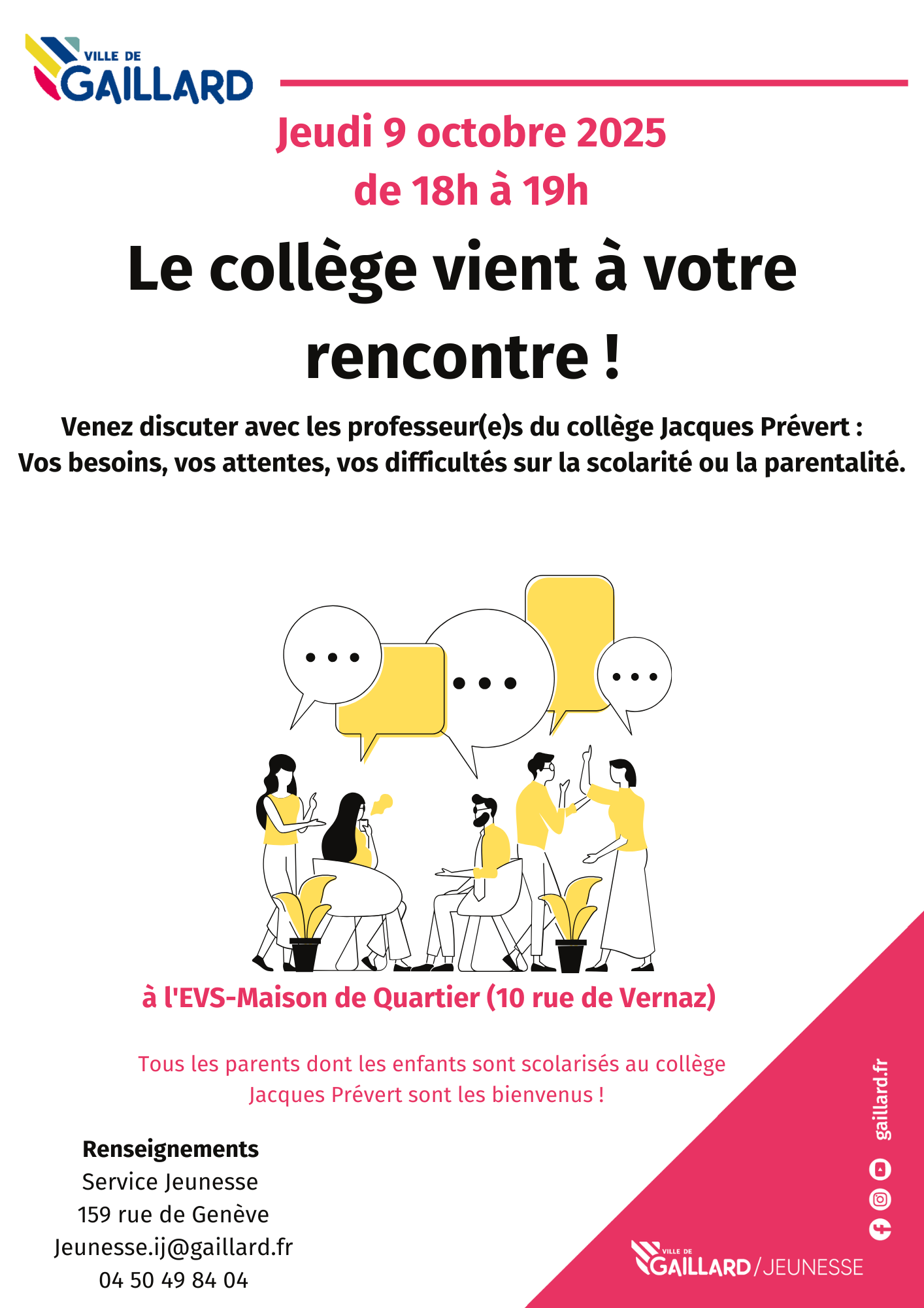 Rencontre Parents-collège à l'EVS - Maison de Quartier à Gaillard le 09 octobre