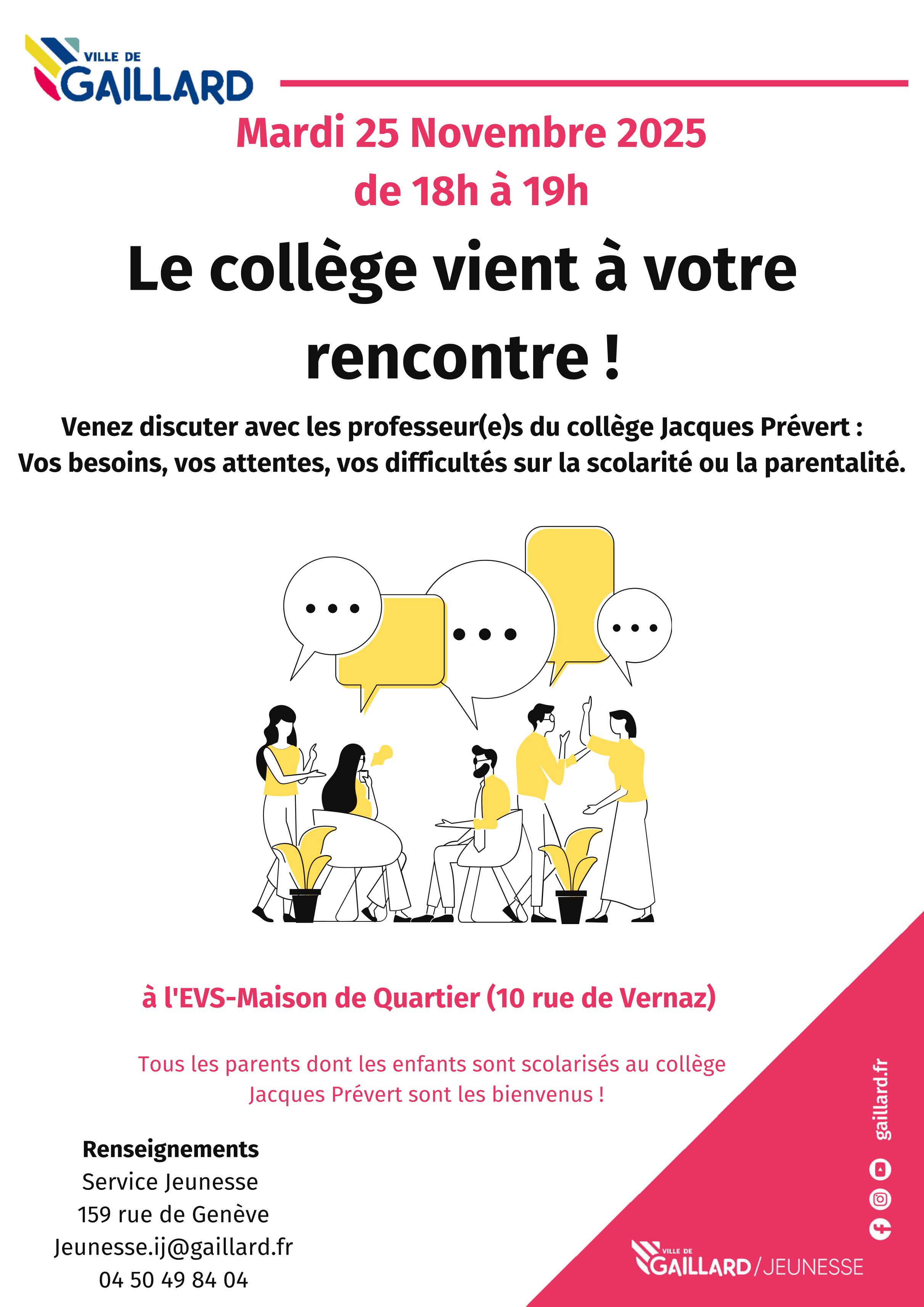 Rencontre Parents-collège à l'EVS - Maison de Quartier à Gaillard le 25 NOVEMBRE